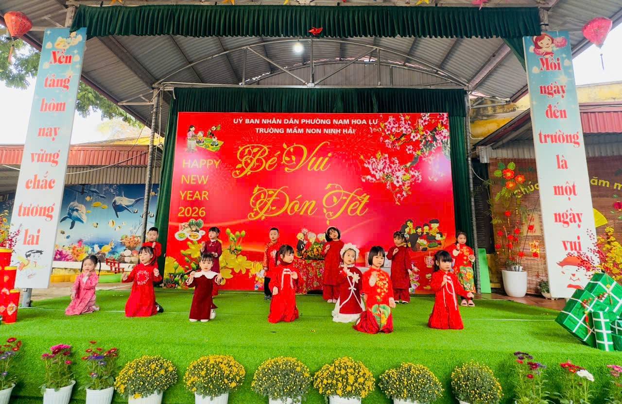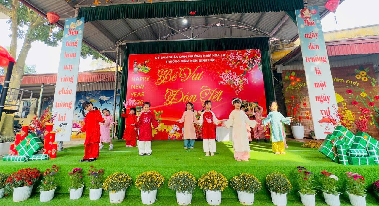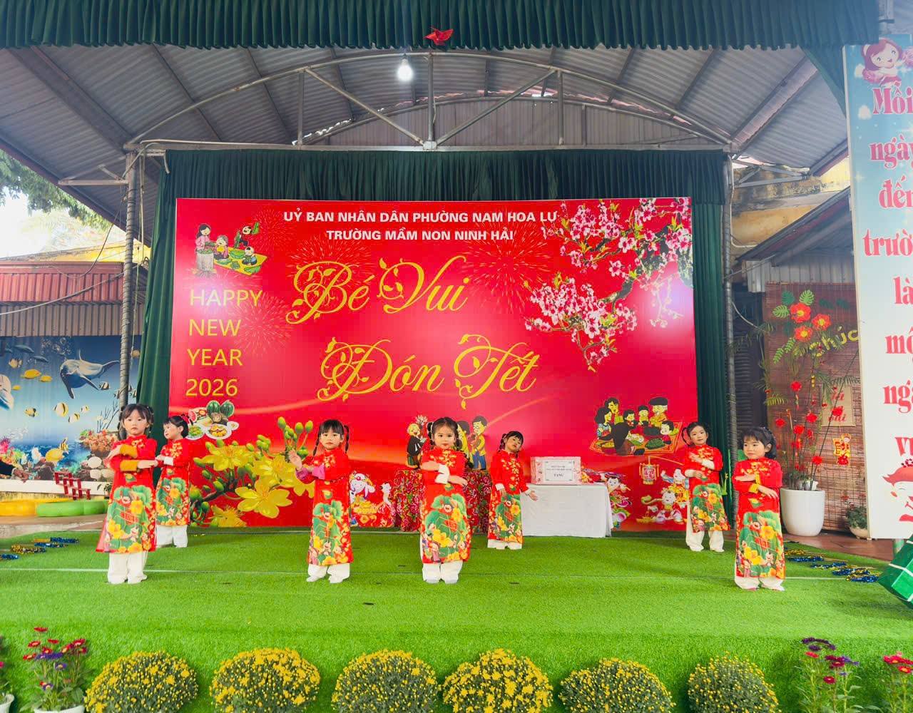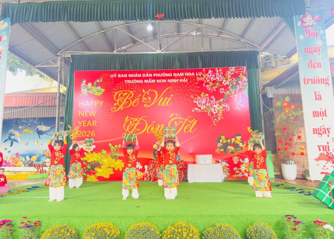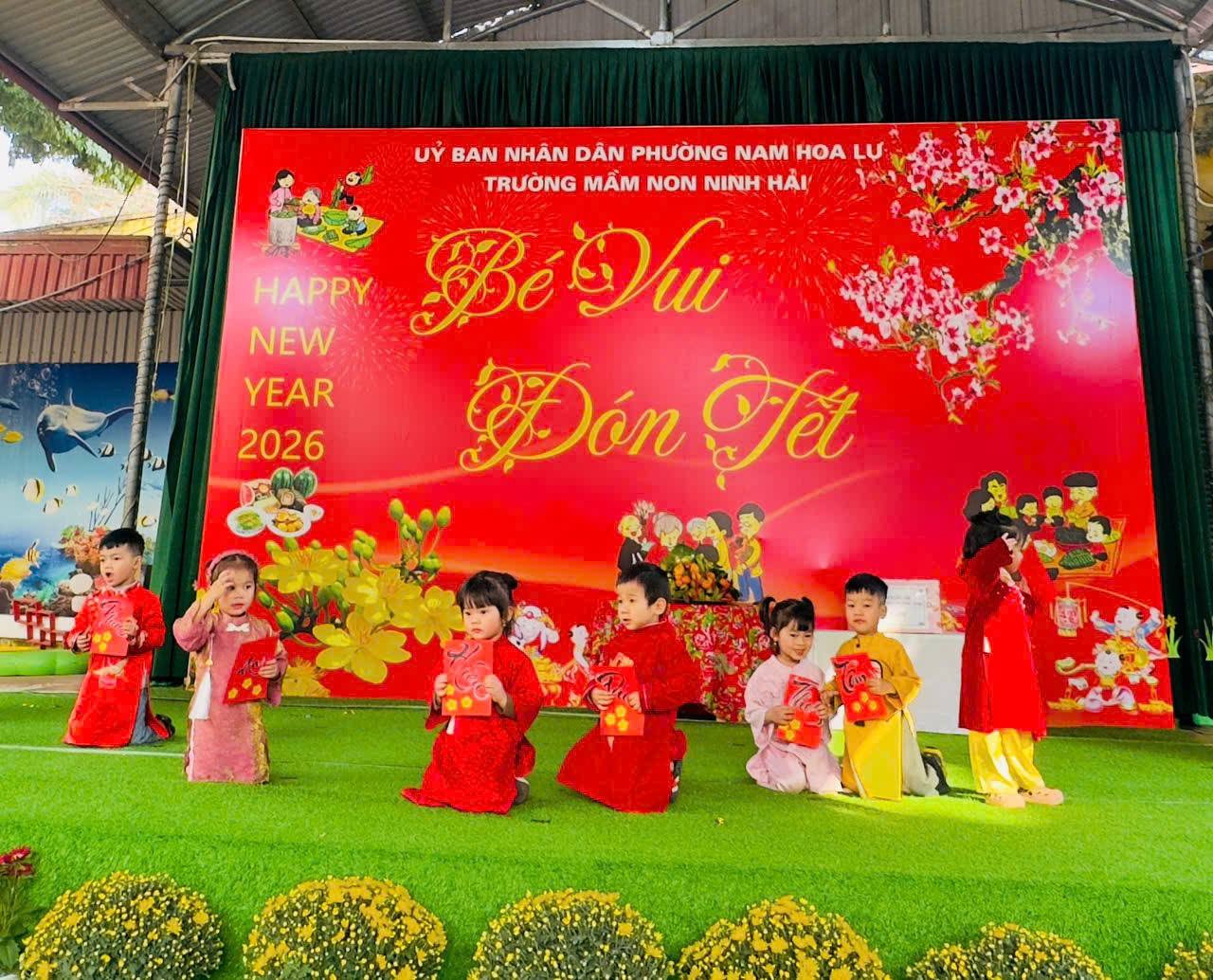 Bé vui đón tết!Khi những nhành mai vàng rực rỡ dưới ánh nắng xuân, những cành đào thắm tô điểm cho không gian, chúng ta biết rằng mùa xuân — mùa của đất trời giao hòa, mùa của hy vọng và sum vầy đã về. Xuân về mang theo cái hừng hực sức sống, rạo rực niềm vui đoàn viên sau một năm làm việc vất vả. Hòa chung không khí rộn ràng đón xuân, chào năm mới. Cô và trò trường MN Ninh Hải tổ chức Chương trình Bé vui đón tết. ĐƠN GIẢN NHƯNG VÔ CÙNG ẤM ÁP!