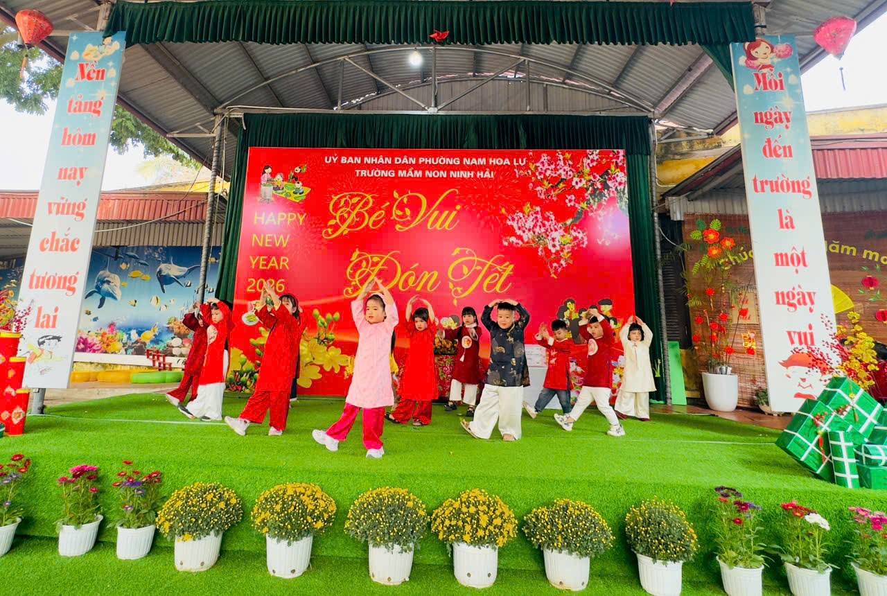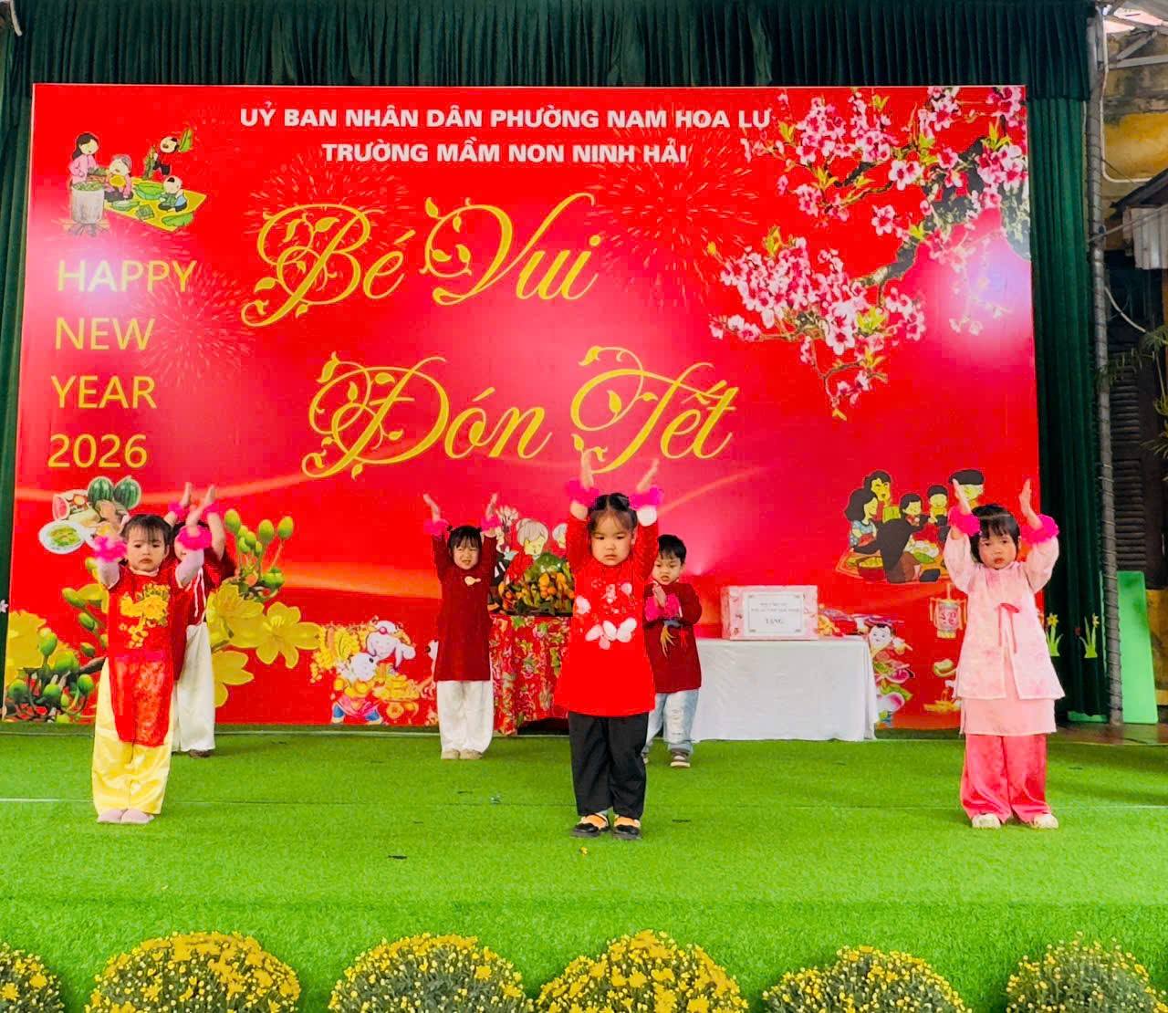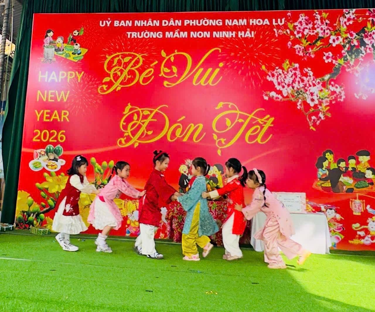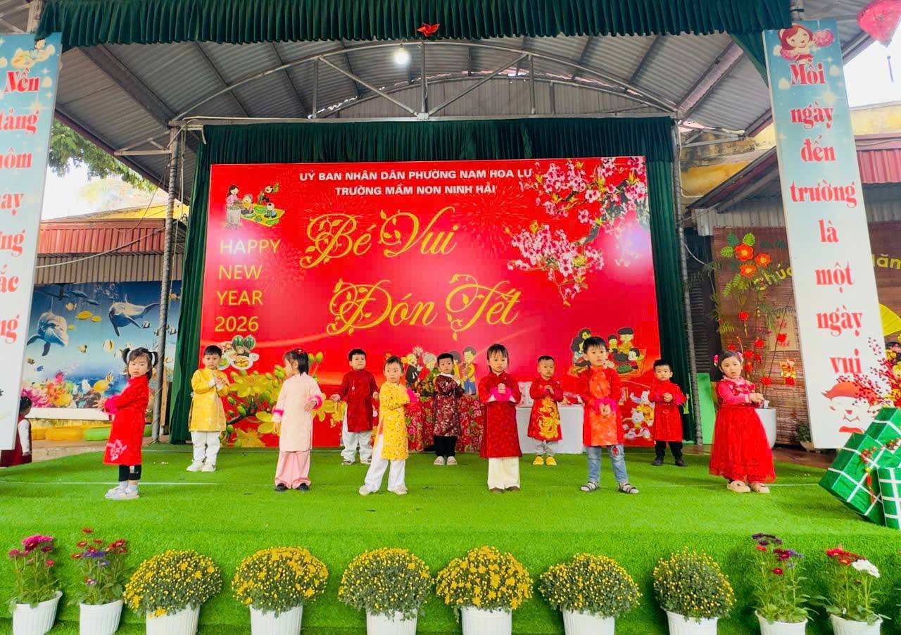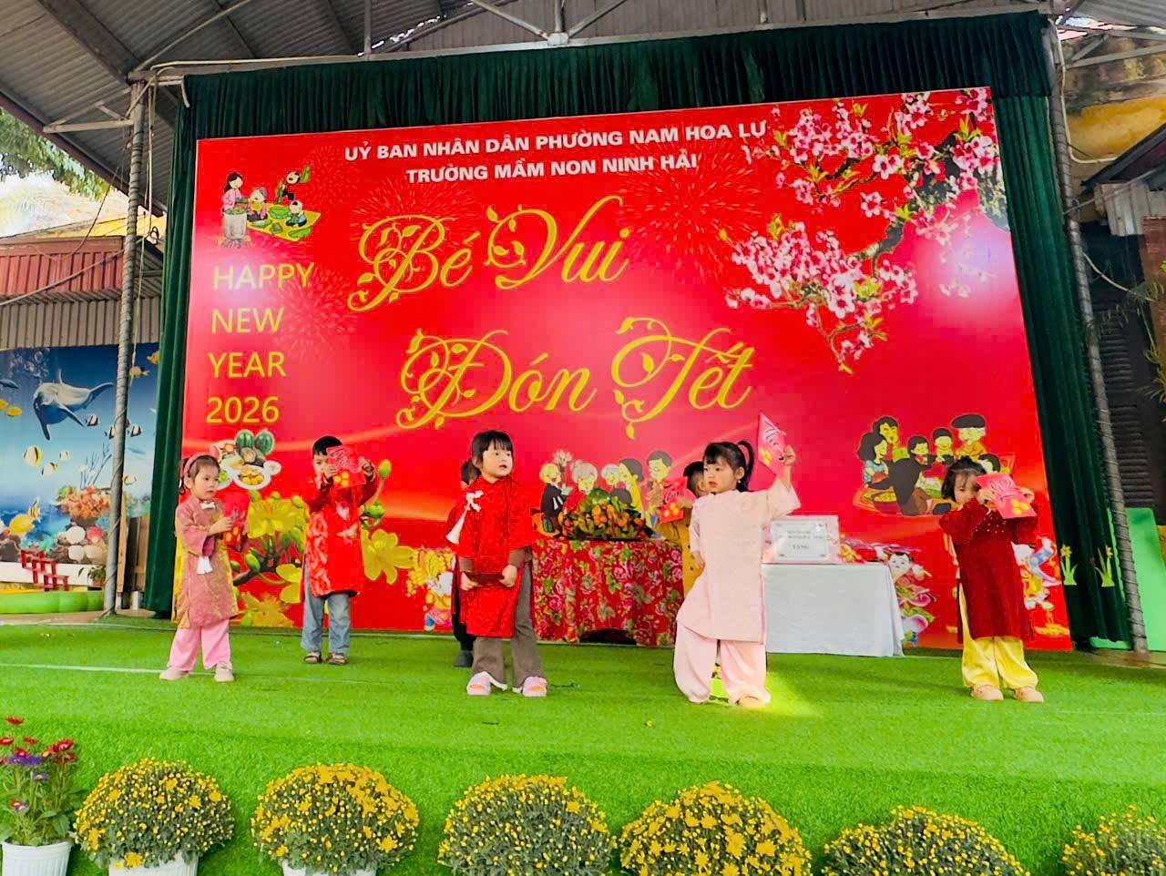 Bé vui đón tết!Khi những nhành mai vàng rực rỡ dưới ánh nắng xuân, những cành đào thắm tô điểm cho không gian, chúng ta biết rằng mùa xuân — mùa của đất trời giao hòa, mùa của hy vọng và sum vầy đã về. Xuân về mang theo cái hừng hực sức sống, rạo rực niềm vui đoàn viên sau một năm làm việc vất vả. Hòa chung không khí rộn ràng đón xuân, chào năm mới. Cô và trò trường MN Ninh Hải tổ chức Chương trình Bé vui đón tết. ĐƠN GIẢN NHƯNG VÔ CÙNG ẤM ÁP!