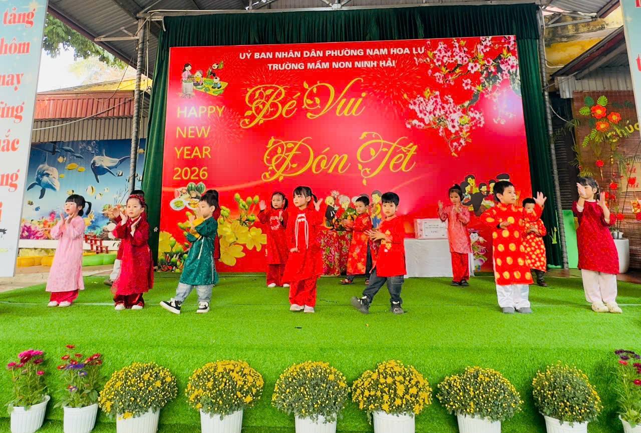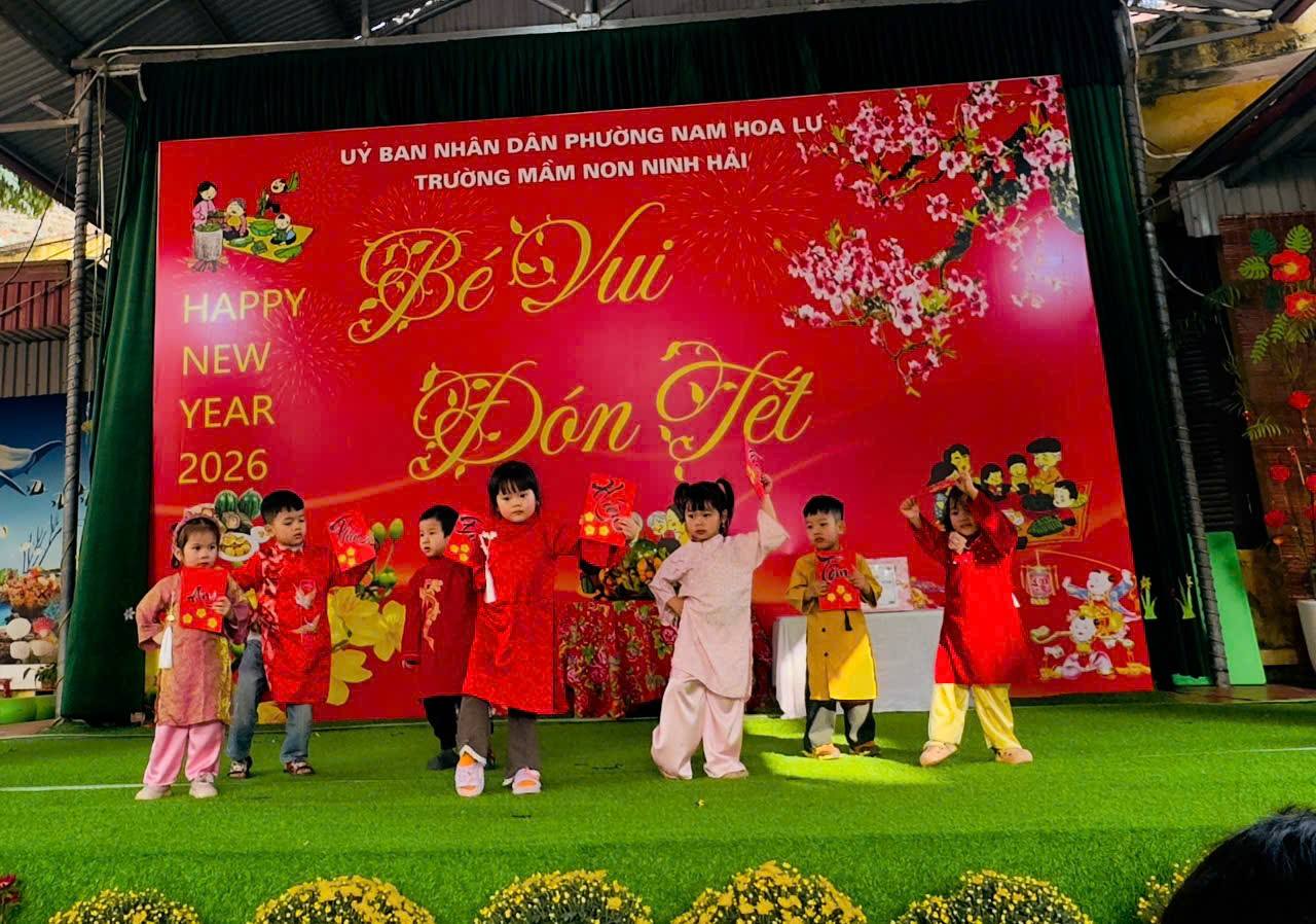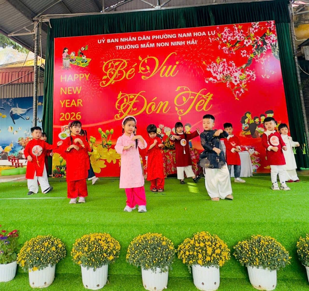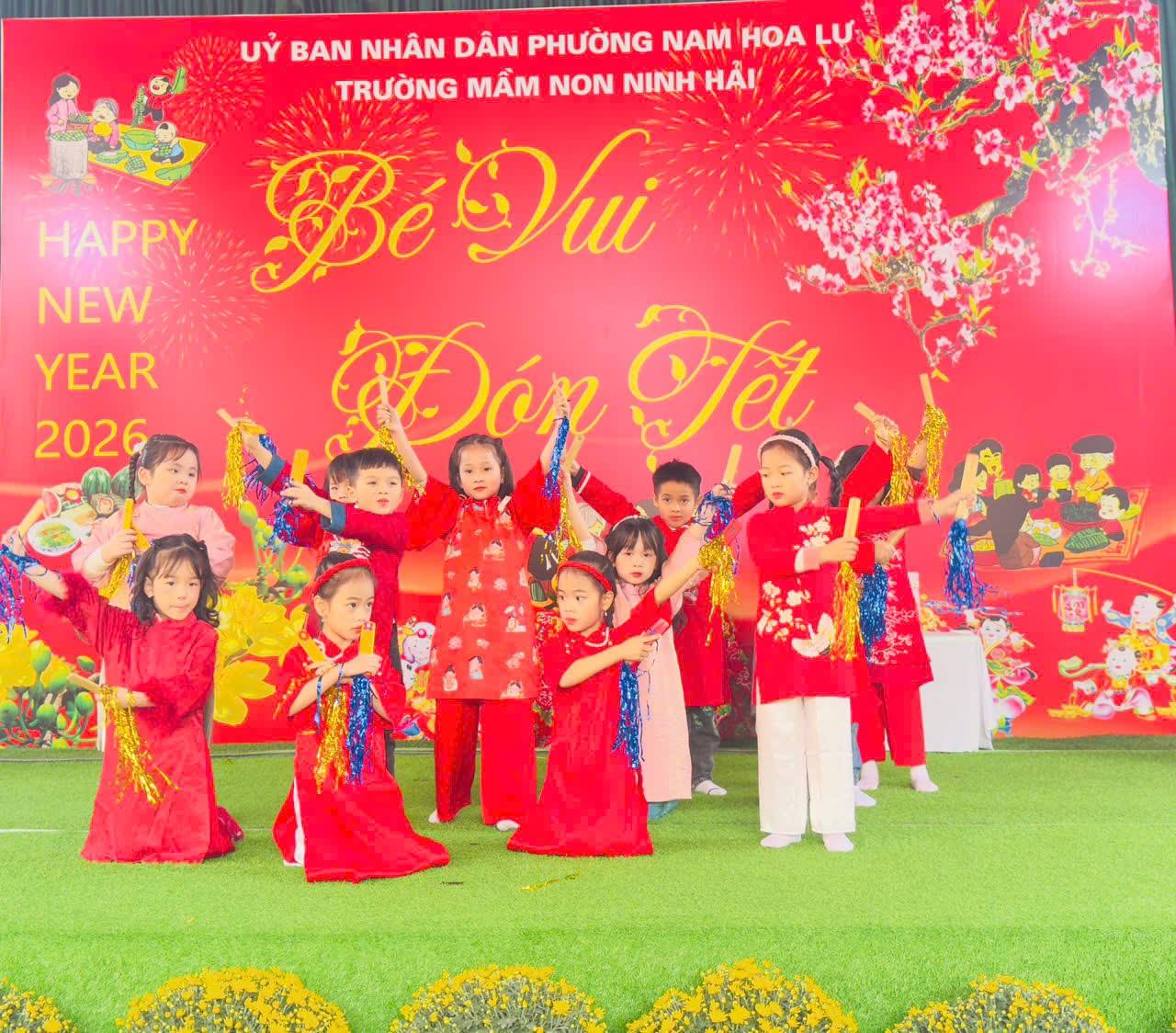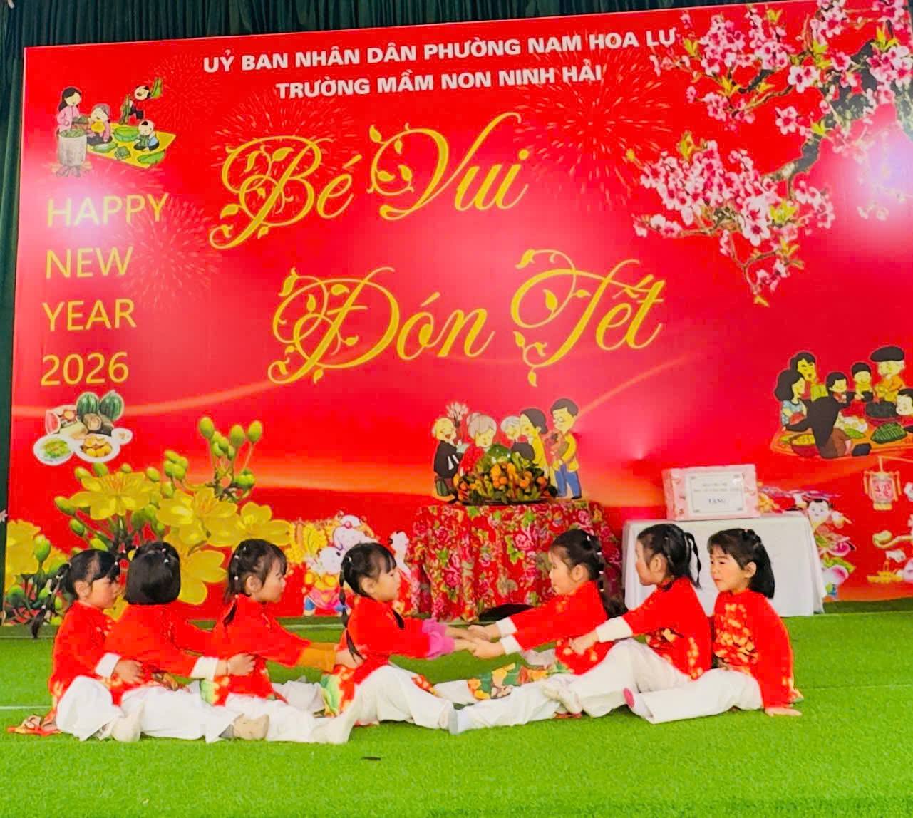 Bé vui đón tết!Khi những nhành mai vàng rực rỡ dưới ánh nắng xuân, những cành đào thắm tô điểm cho không gian, chúng ta biết rằng mùa xuân — mùa của đất trời giao hòa, mùa của hy vọng và sum vầy đã về. Xuân về mang theo cái hừng hực sức sống, rạo rực niềm vui đoàn viên sau một năm làm việc vất vả. Hòa chung không khí rộn ràng đón xuân, chào năm mới. Cô và trò trường MN Ninh Hải tổ chức Chương trình Bé vui đón tết. ĐƠN GIẢN NHƯNG VÔ CÙNG ẤM ÁP!