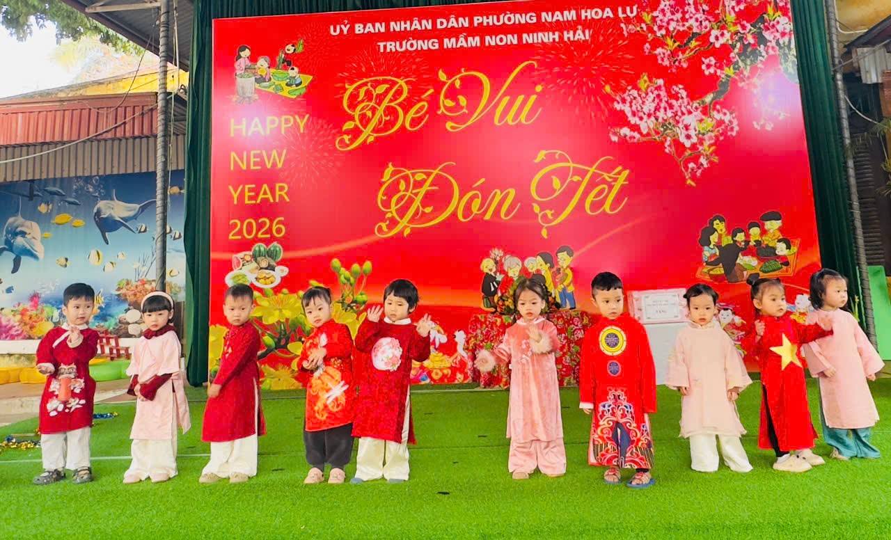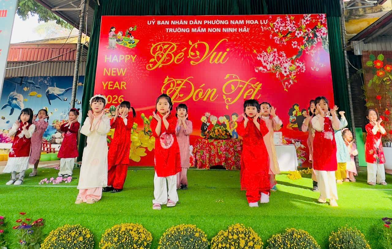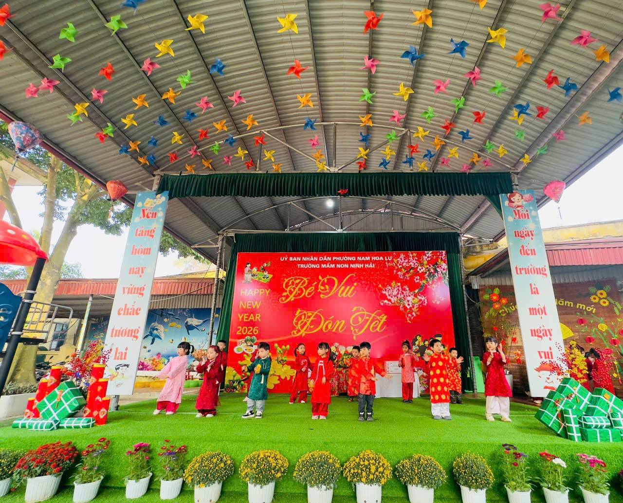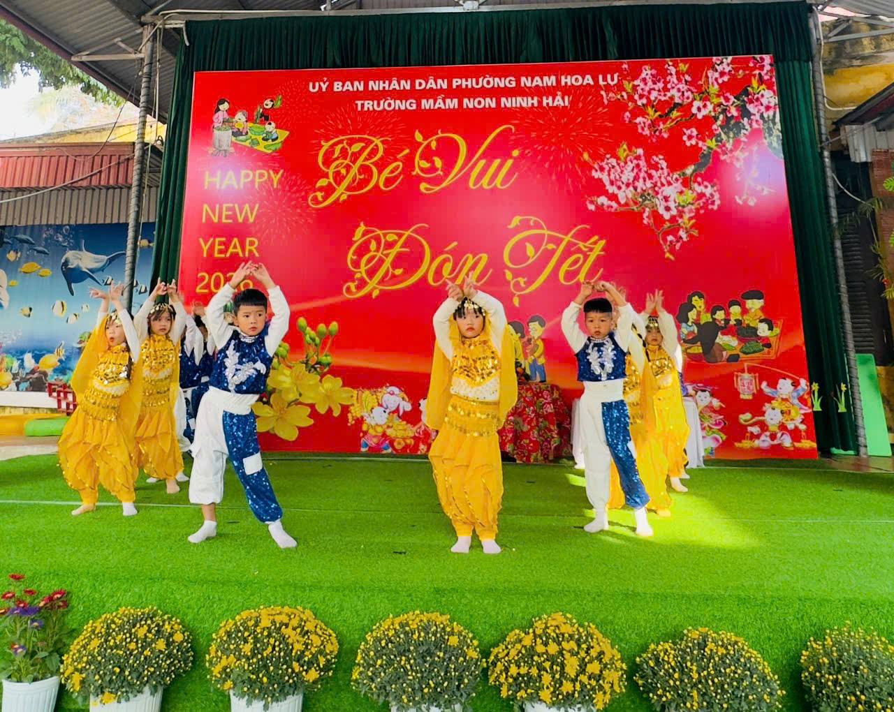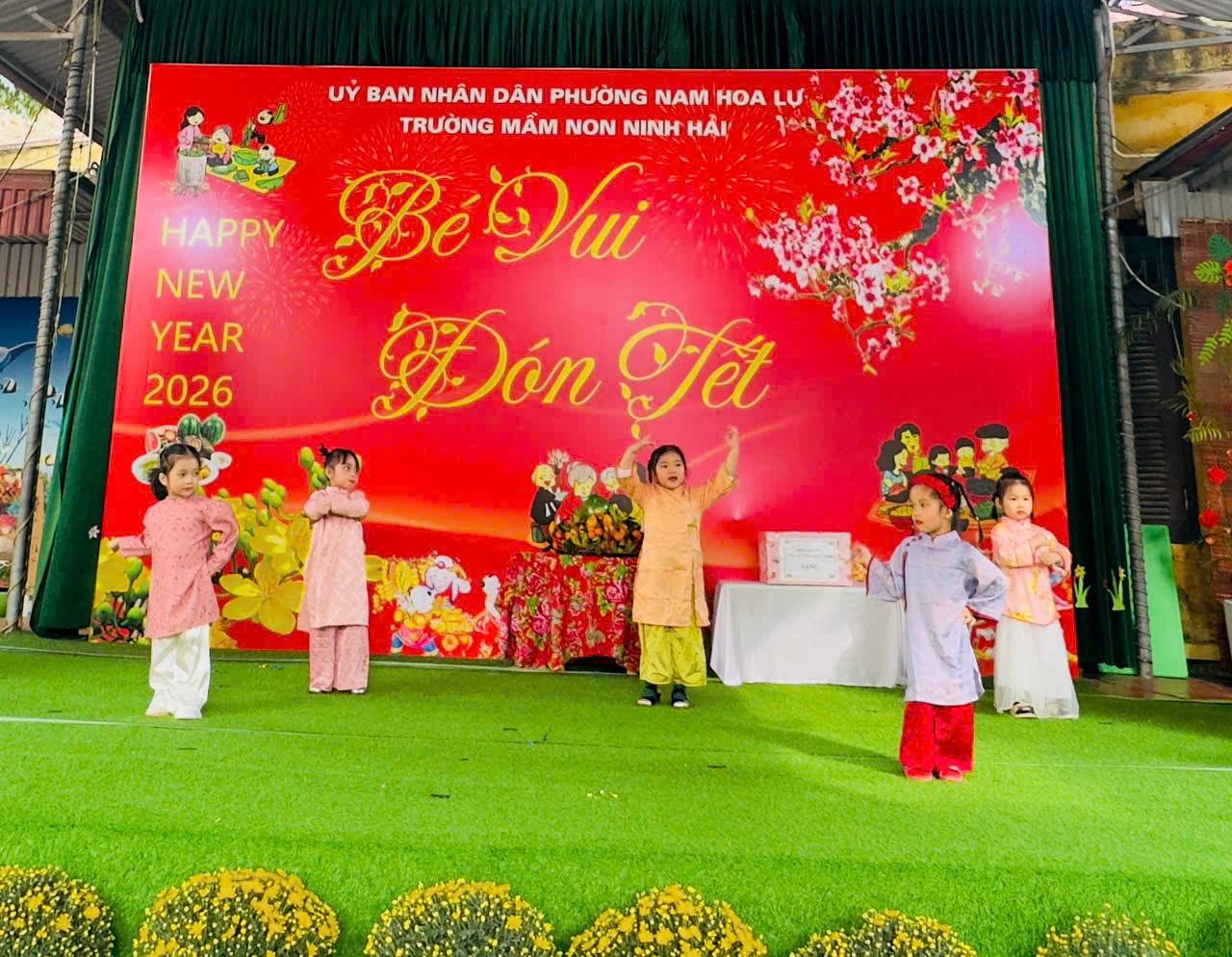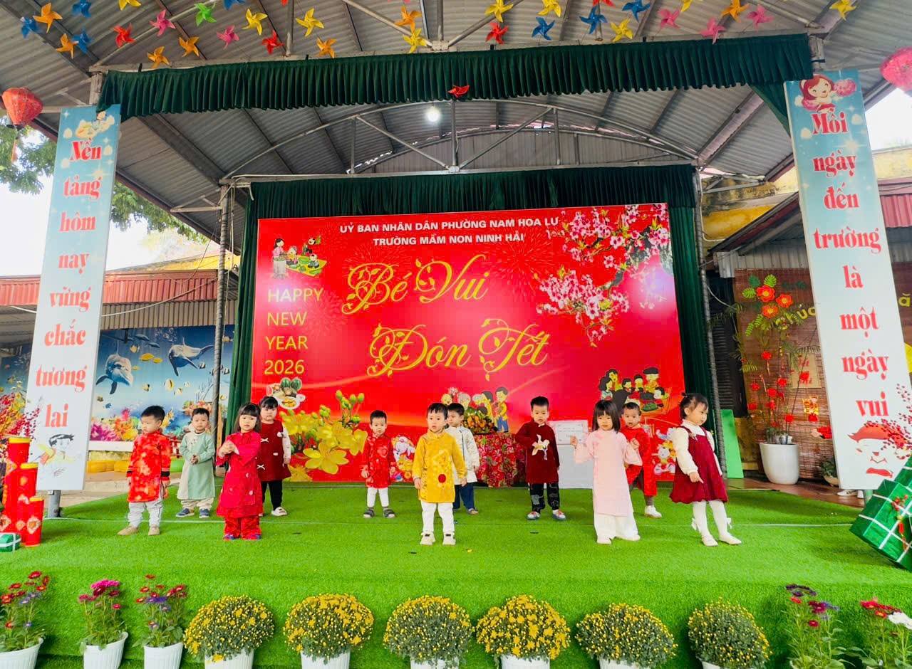 Bé vui đón tết!Khi những nhành mai vàng rực rỡ dưới ánh nắng xuân, những cành đào thắm tô điểm cho không gian, chúng ta biết rằng mùa xuân — mùa của đất trời giao hòa, mùa của hy vọng và sum vầy đã về. Xuân về mang theo cái hừng hực sức sống, rạo rực niềm vui đoàn viên sau một năm làm việc vất vả. Hòa chung không khí rộn ràng đón xuân, chào năm mới. Cô và trò trường MN Ninh Hải tổ chức Chương trình Bé vui đón tết. ĐƠN GIẢN NHƯNG VÔ CÙNG ẤM ÁP!