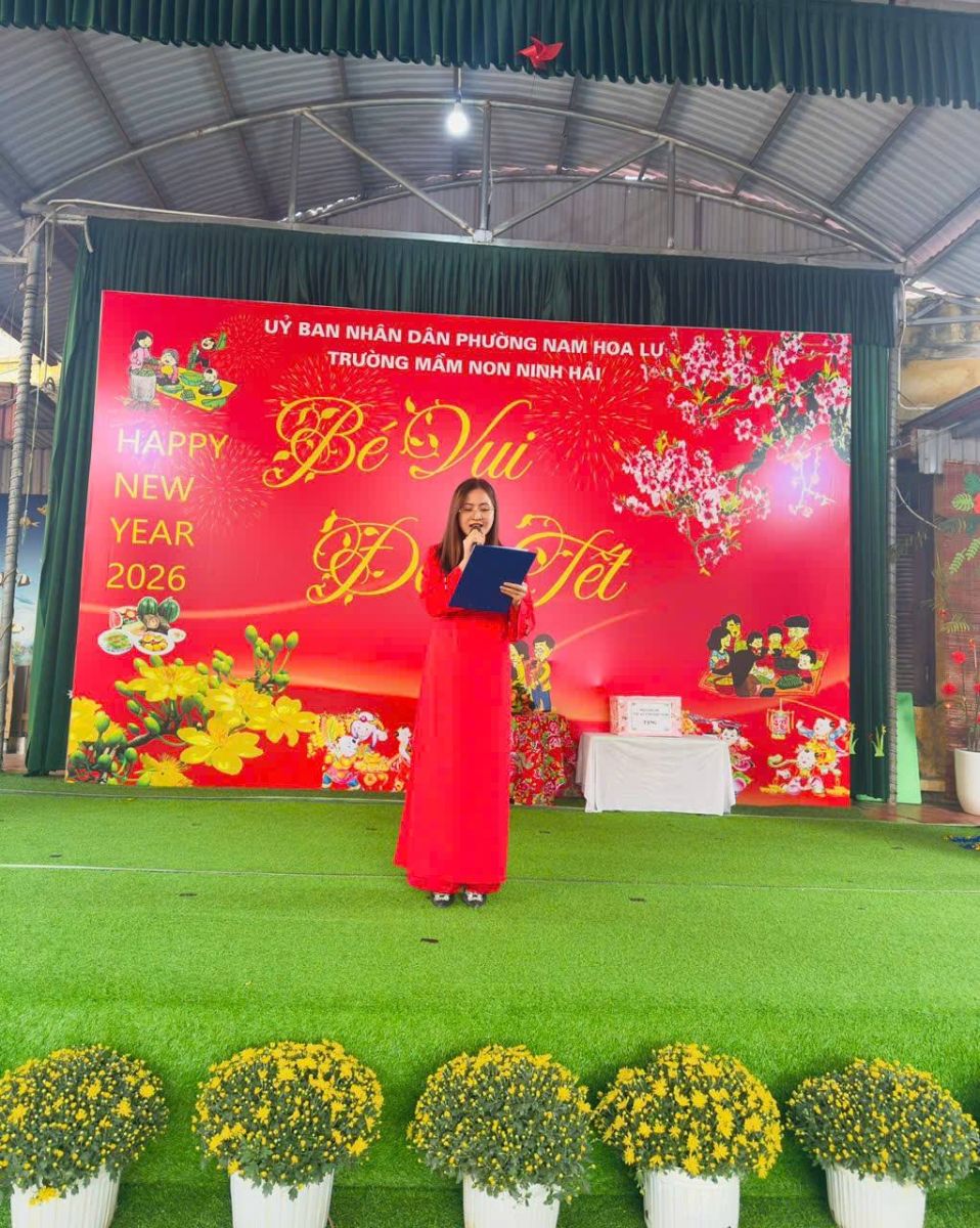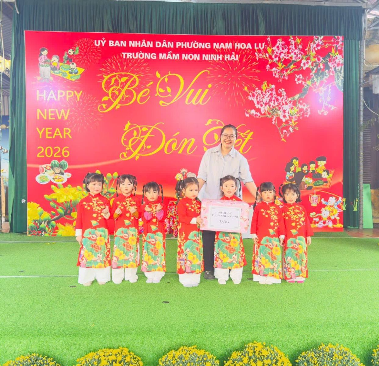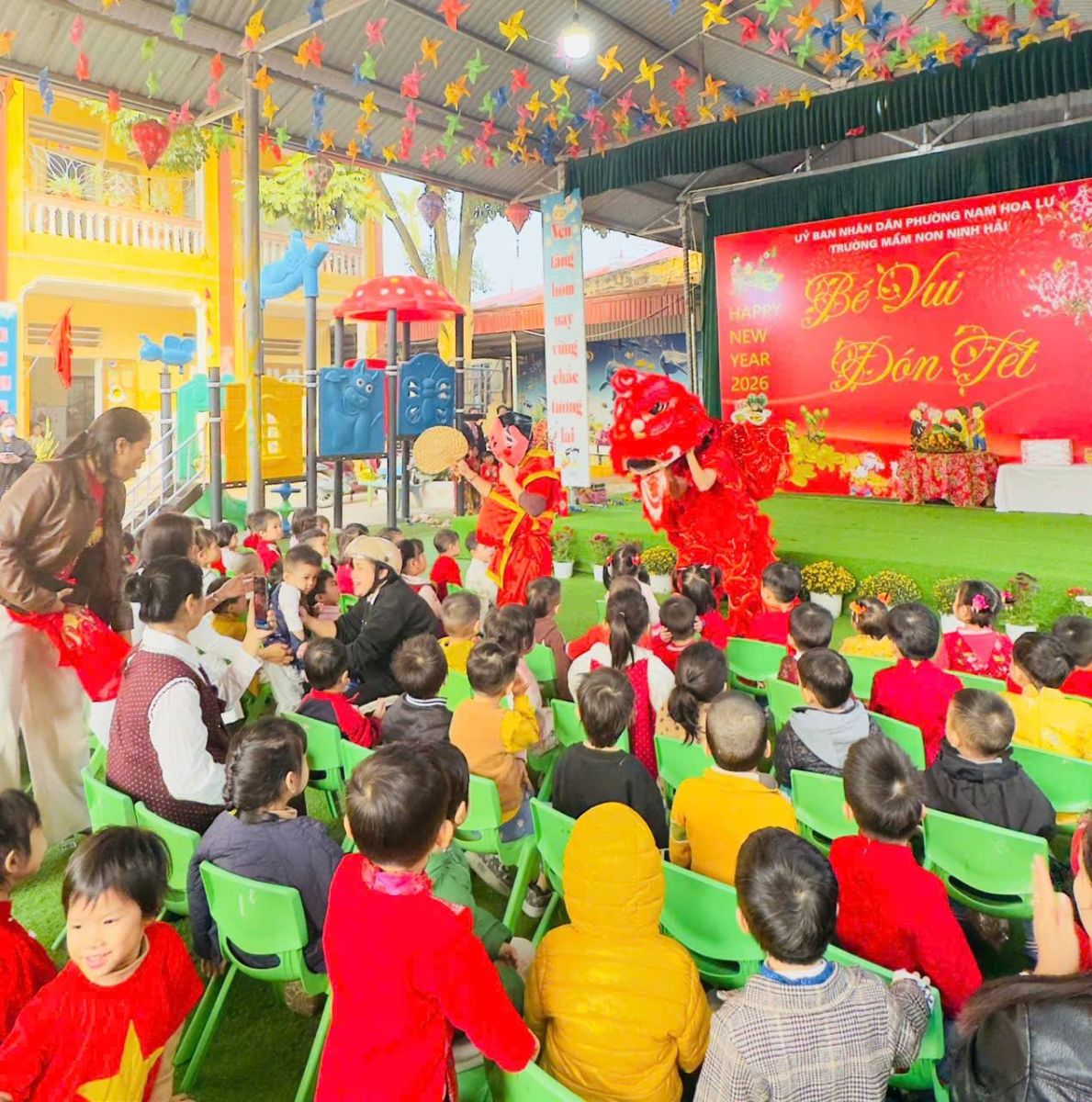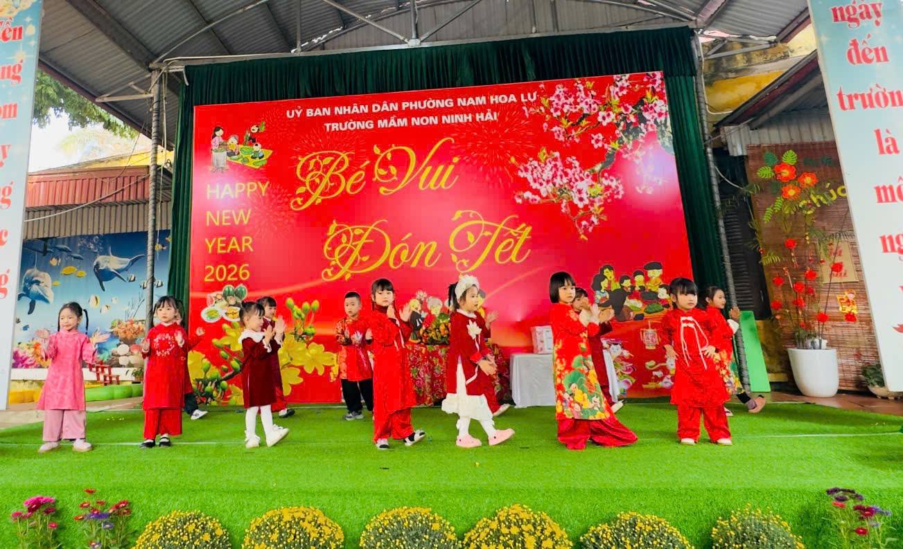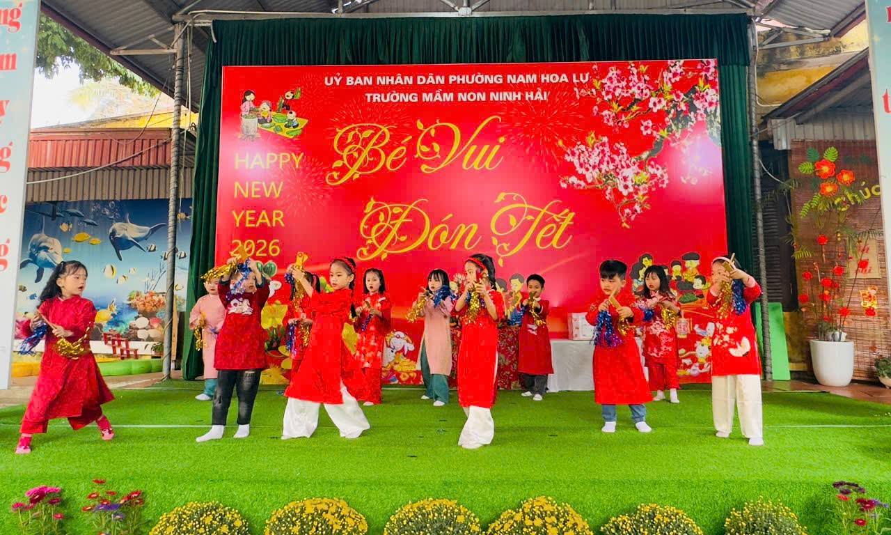 Bé vui đón tết!Khi những nhành mai vàng rực rỡ dưới ánh nắng xuân, những cành đào thắm tô điểm cho không gian, chúng ta biết rằng mùa xuân — mùa của đất trời giao hòa, mùa của hy vọng và sum vầy đã về. Xuân về mang theo cái hừng hực sức sống, rạo rực niềm vui đoàn viên sau một năm làm việc vất vả. Hòa chung không khí rộn ràng đón xuân, chào năm mới. Cô và trò trường MN Ninh Hải tổ chức Chương trình Bé vui đón tết. ĐƠN GIẢN NHƯNG VÔ CÙNG ẤM ÁP!