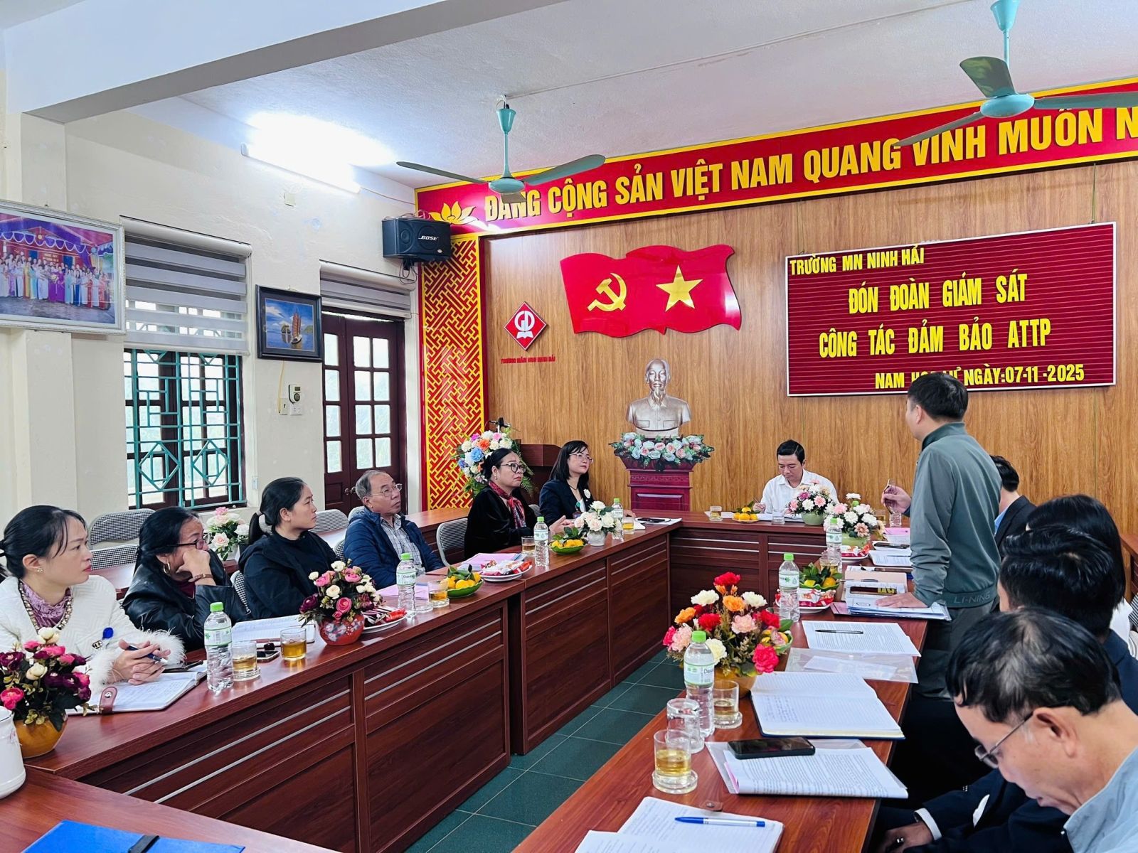 Ngày 07/11/2025, trường Mn Ninh Hải đón đoàn Giám sát công tác đảm bảo An toàn thực phẩm.